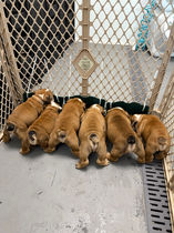 Sir Clyde and Madam Bonnie blessed us with a litter of 5 males in various colors. All these beautiful baby boy bulldogs found their forever homes.